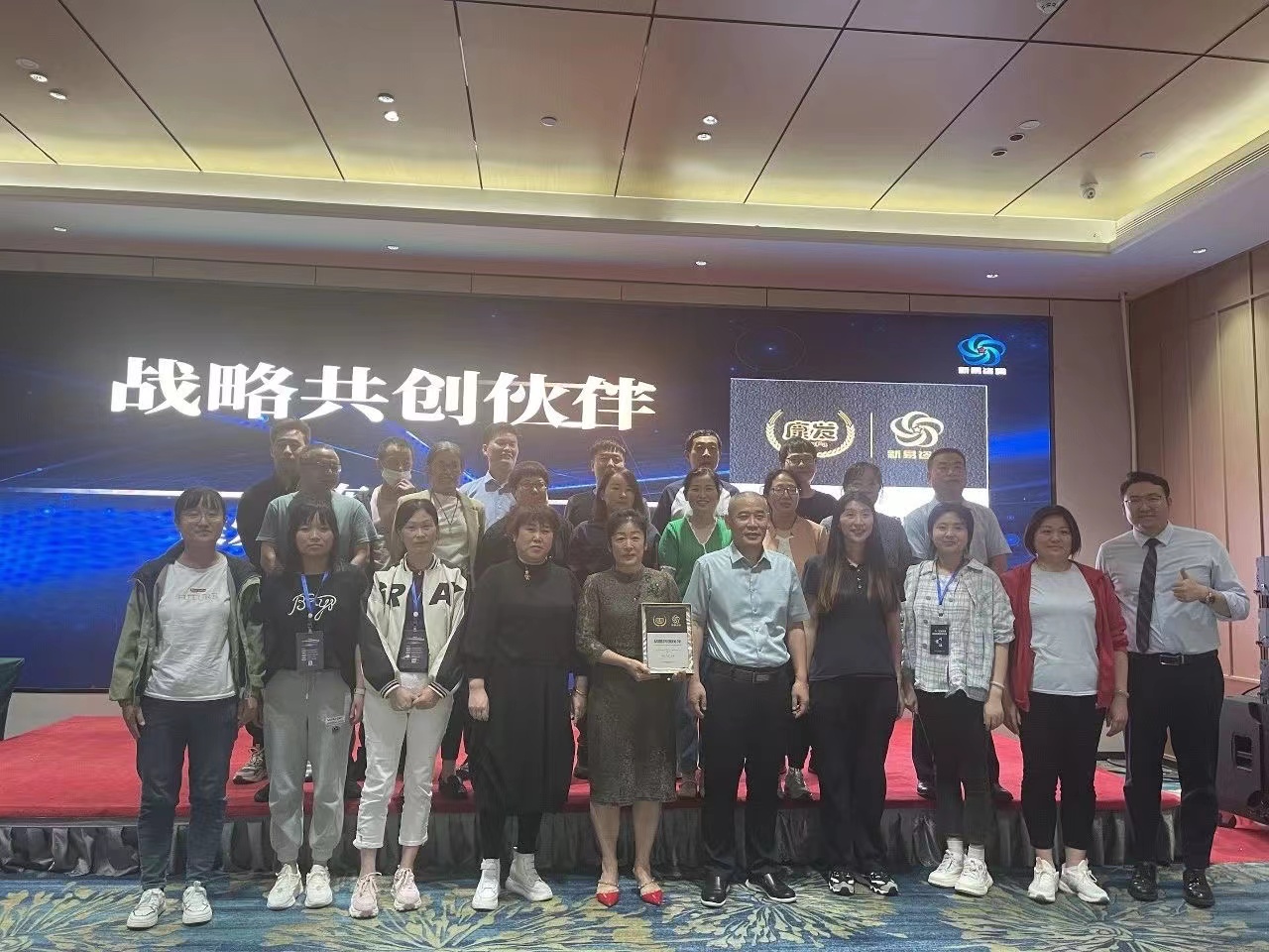 本次管理赋能训练营特别环节:新易咨询在课程现场为近期刚与新易咨询达成长期战略陪伴合作的河北雄县飞洋环保包装科技有限公司以及济南康发食品有限公司两家企业进行合作授牌仪式。