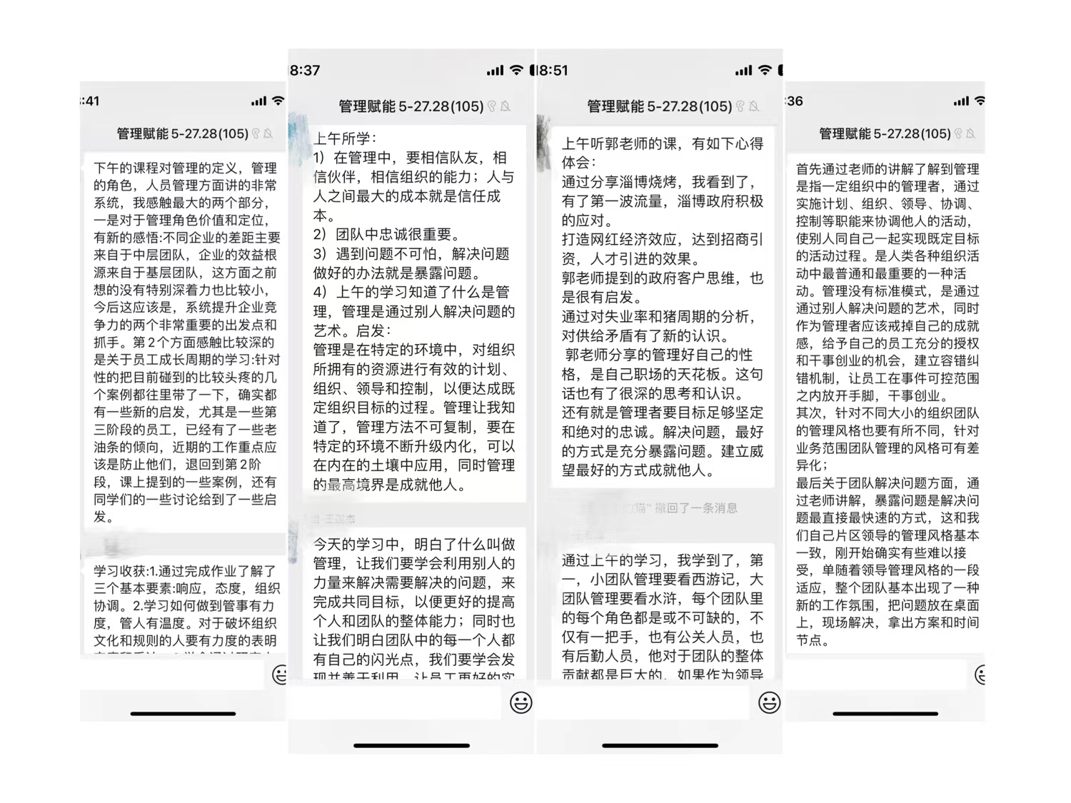 郭老师在第一天的课程现场给大家带来了百战归来再读书、重新认知管理两部分内容,管理者唯有先提升认知格局,接受并能够主动改变,为超越过去的自己而学习,才能真正改变。