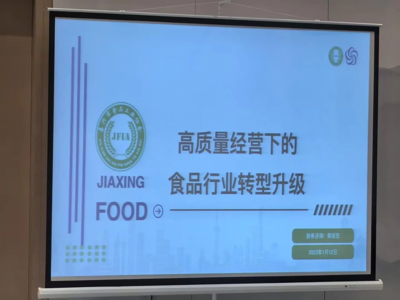 1月12日,嘉兴市食品工业协会六届四次理事会在嘉兴沙龙宾馆召开,本次会议协会方特邀新易咨询合伙人/顾问中心总监郭俊宏顾问,为各理事单位带来《高质量经营下的食品行业转型升级》主题赋能分享,推动食品行业协会企业理事单位更好地应对当下发展环境。